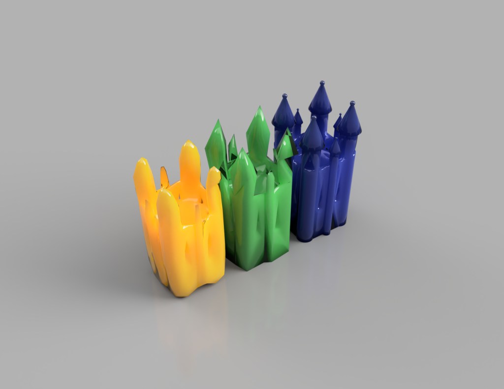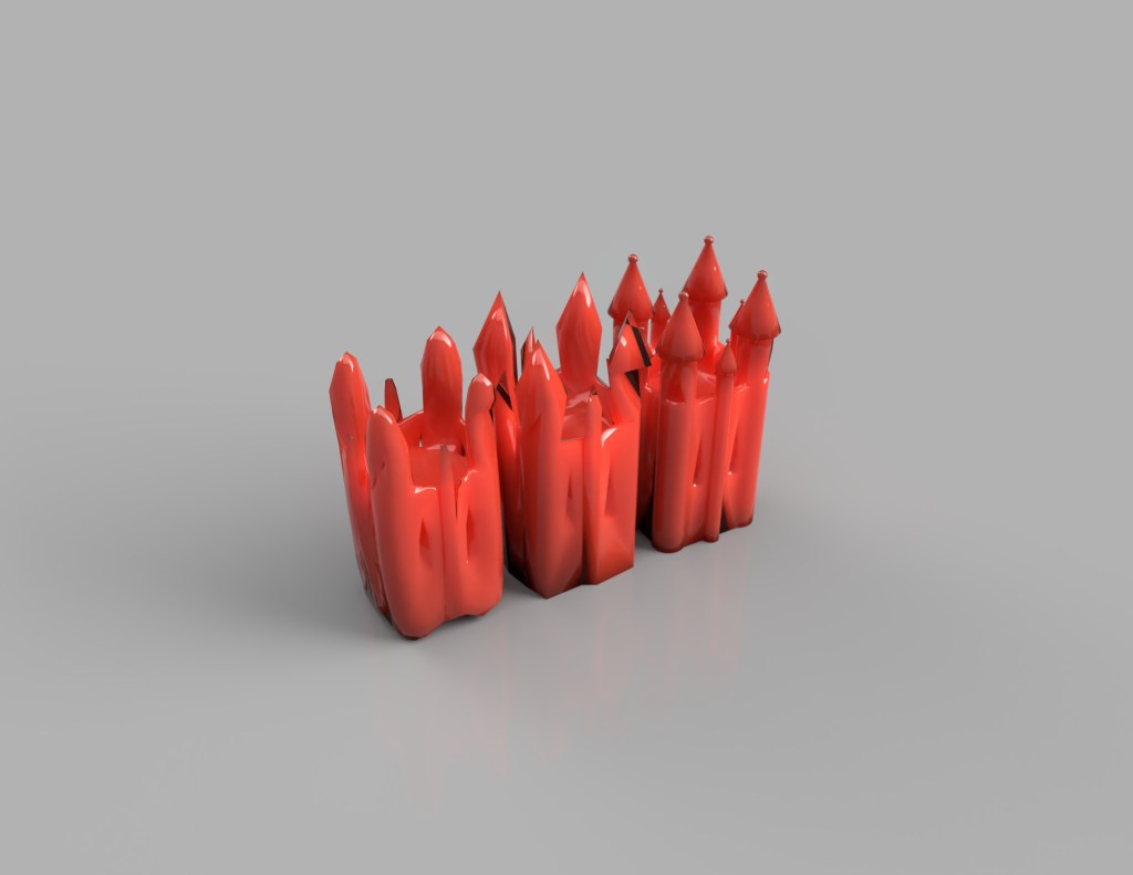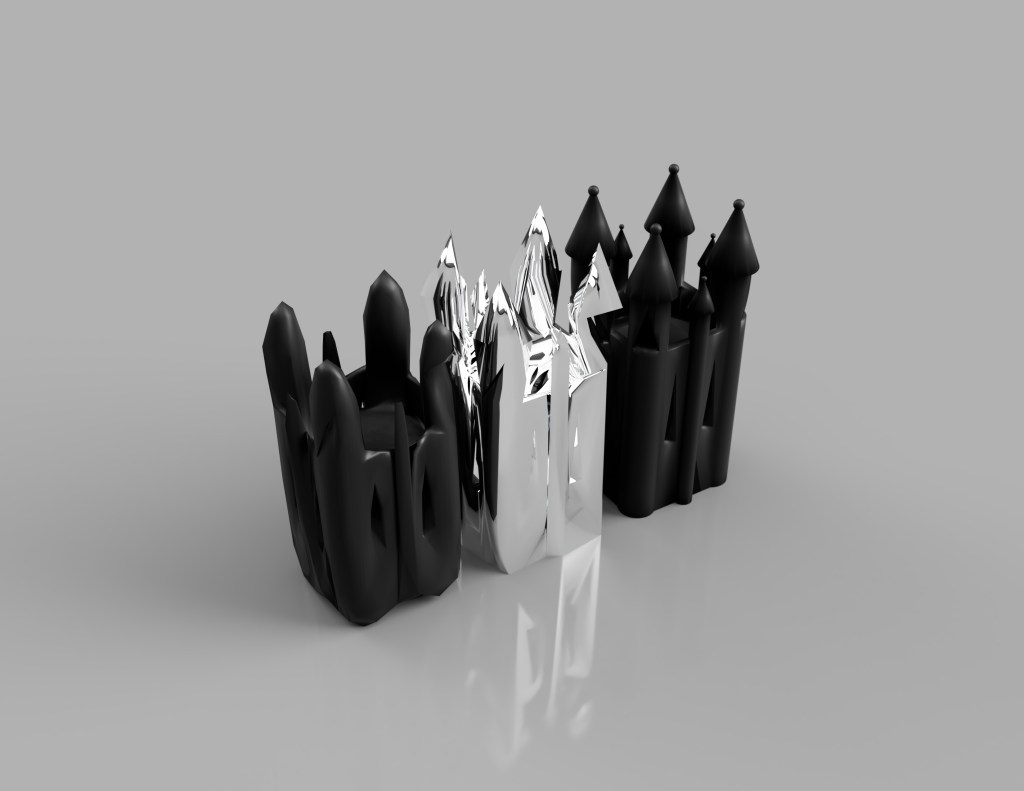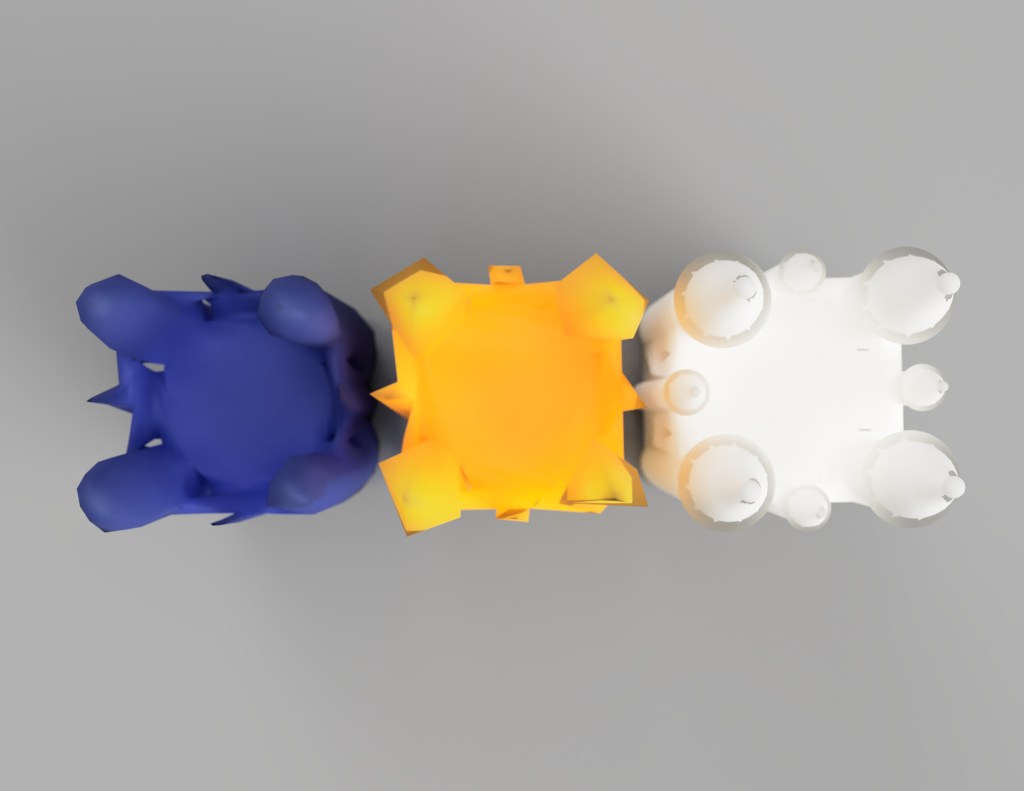I decided to generate renders of the models alongside one another in order to see how material and colour make them contrast with one another more strongly. I really like the use of emissive, translucent, transparent and reflective objects. It seems to evoke this reproductive sense in a very material way, bouncing concepts from one object to another. Moving forward, I want to look at artists who have taken common objects, and attempted to distort these. I feel creating objects which resemble existing ones just close enough to be tangible could provide inspiration further.