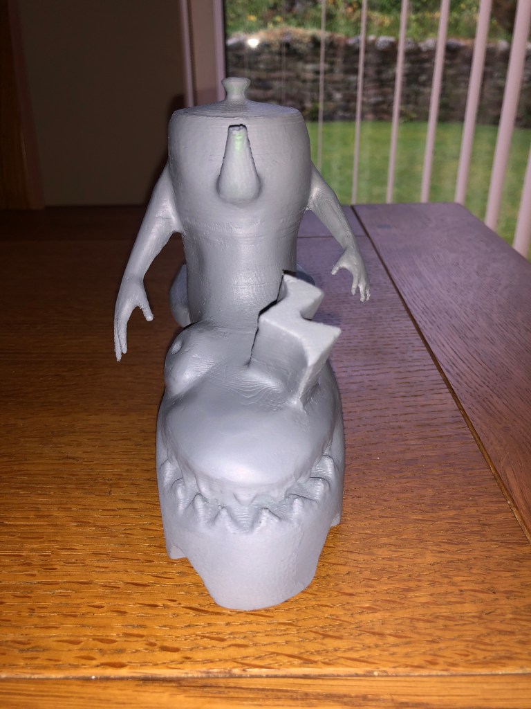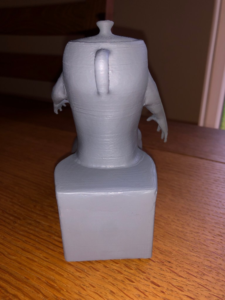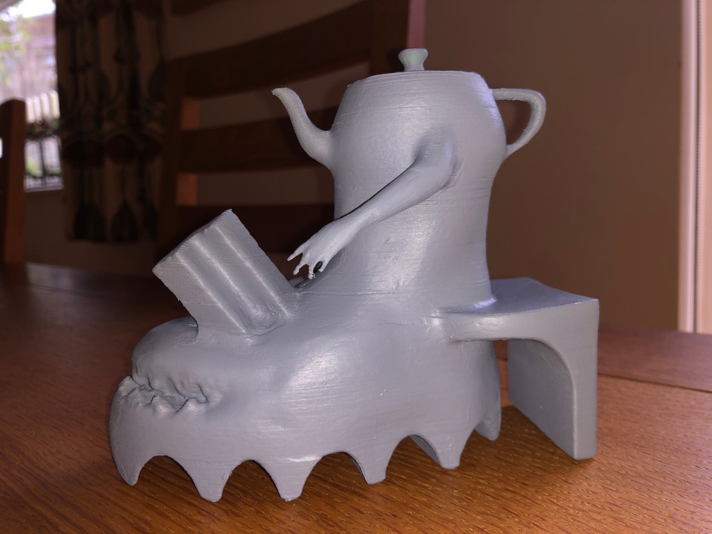 Here I have filled and primed the 3D model of the uncanny valley model which came from my subconscious. I feel now that is has been further removed from digitality, it now feels even weirder. It is so physical, as opposed to digital or mental, that it feels as though it were something real. Perhaps I have uncovered the state of abstract sculpture. Where once brought into physicality, something which belongs in the mental realm becomes uncanny and fascinating due to appearing so out of place.