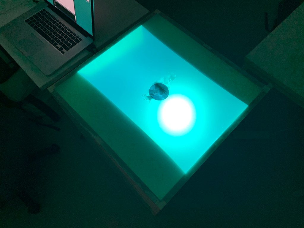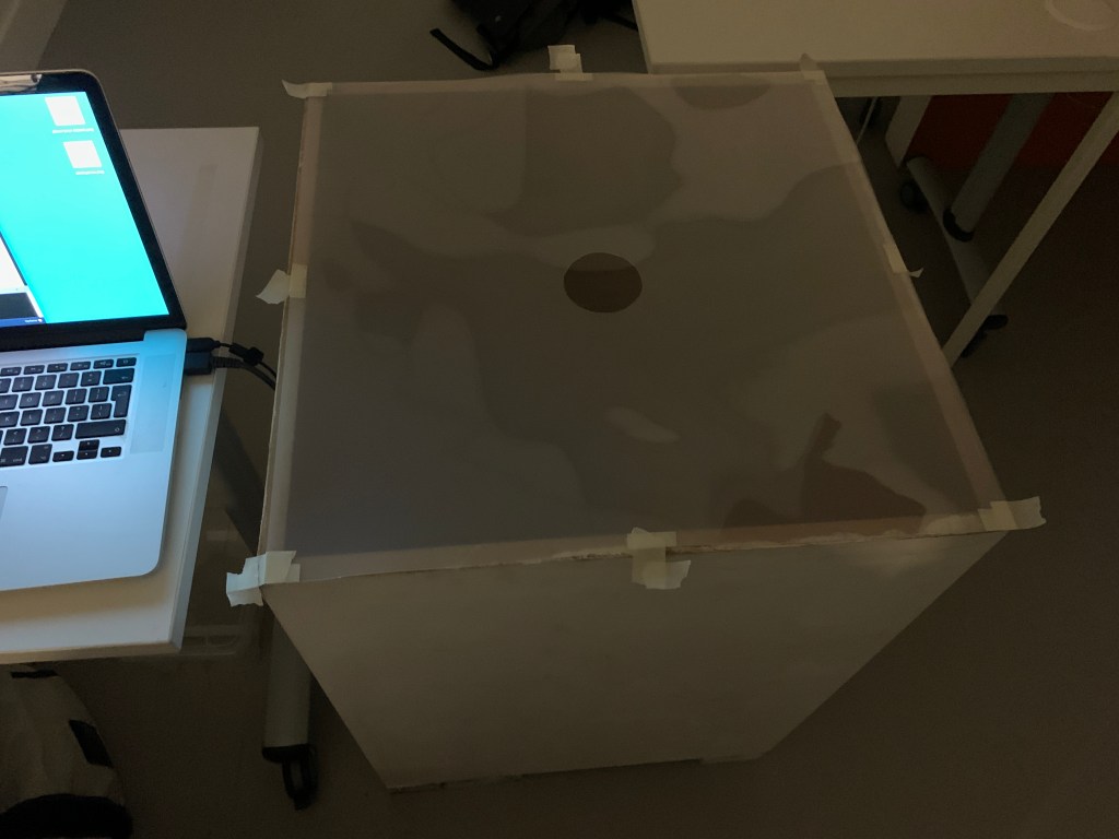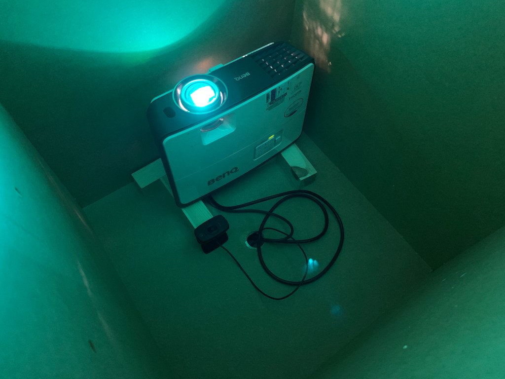 This week, I decided to focus on refining work which I have previously created in order to try and make it highly presentable for an upcoming exhibition. The main work which I have been trying to perfect in the way it works is praise the material. Using the webcam inside the plinth now, with the projector also concealed inside, the whole setup functions in a much more polished way. Because of the light exuding from below, no further lighting is needed, and much of the original colour is transferred from the object. I can further improve and tweak this throughout the week in order to make it entirely presentable. The video below shows it functioning extremely accurately with a feature added to allow for a prompt to appear whenever an object/colour is not detected on the table. I may add audio and more visual explosiveness to the whole thing in order to make it more of an enriched experience. The plinth could also benefit from some clean coats of paint along with potentially making a top featuring a circular hole in order to mask the projection and allow for heavier objects to be placed.
