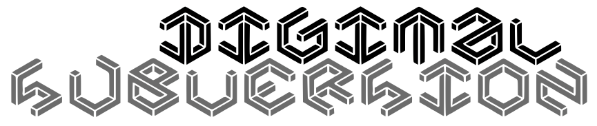 Experimenting visually in text based form trying to demonstrate what digital subversion looks like I came up with these. They are using isometric cube drawings, extending this into a font which creates impossible joinings in a similar way to the penrose triangle. Visually approaching the area I want to explore is always helpful to me. I want to further this exploration with drawing in abstract forms and seeing what my mind conceives. The way this text uses a digital environment to create imagery which subverts what is possible within a physical one is exactly the effect I am wanting to express through my research.